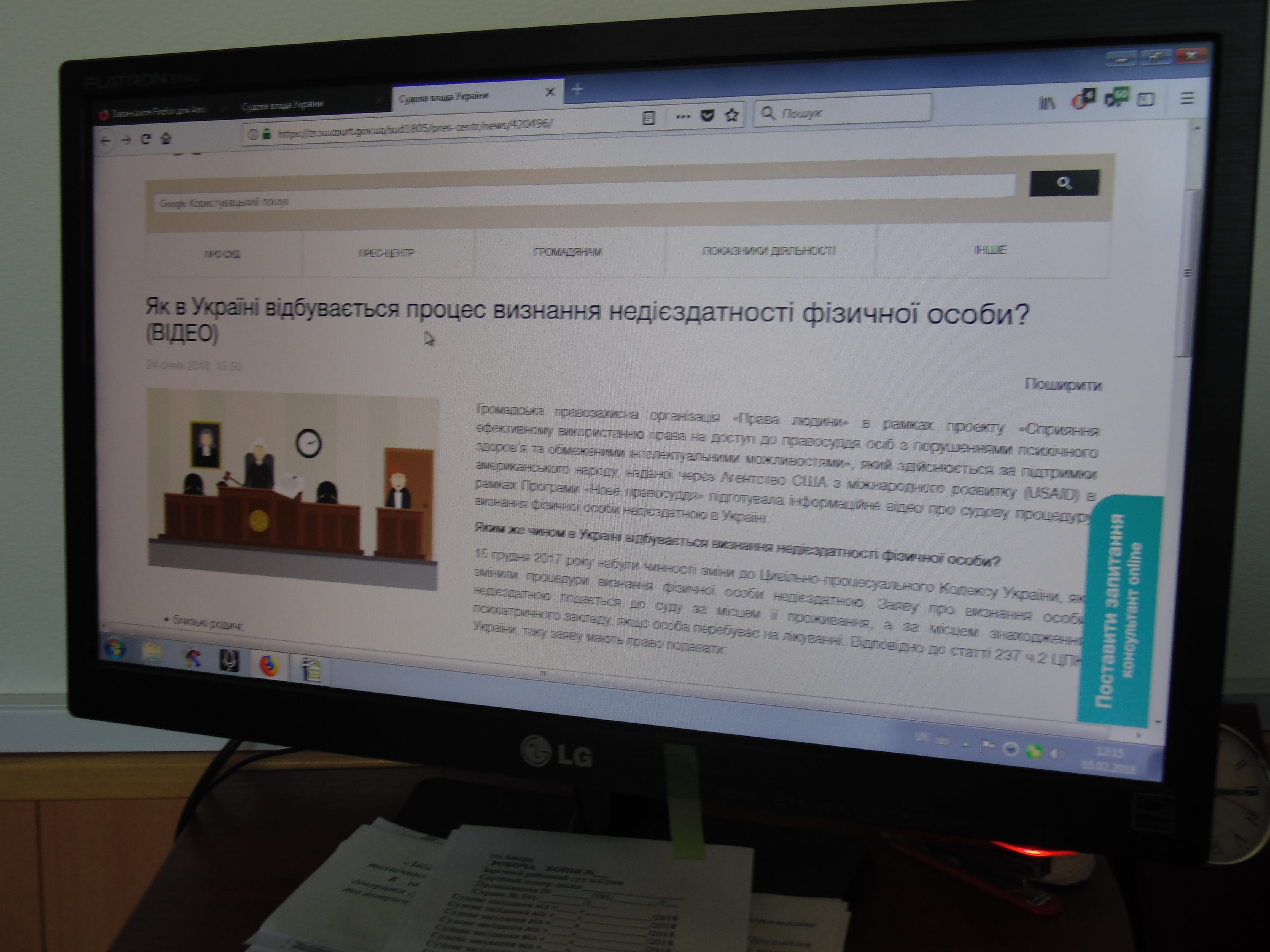 05 лютого 2018 року у приміщенні Зарічного районного суду м. Суми відбувся круглий стіл щодо новел в законодавстві, які стосуються визнання осіб недієздатними.