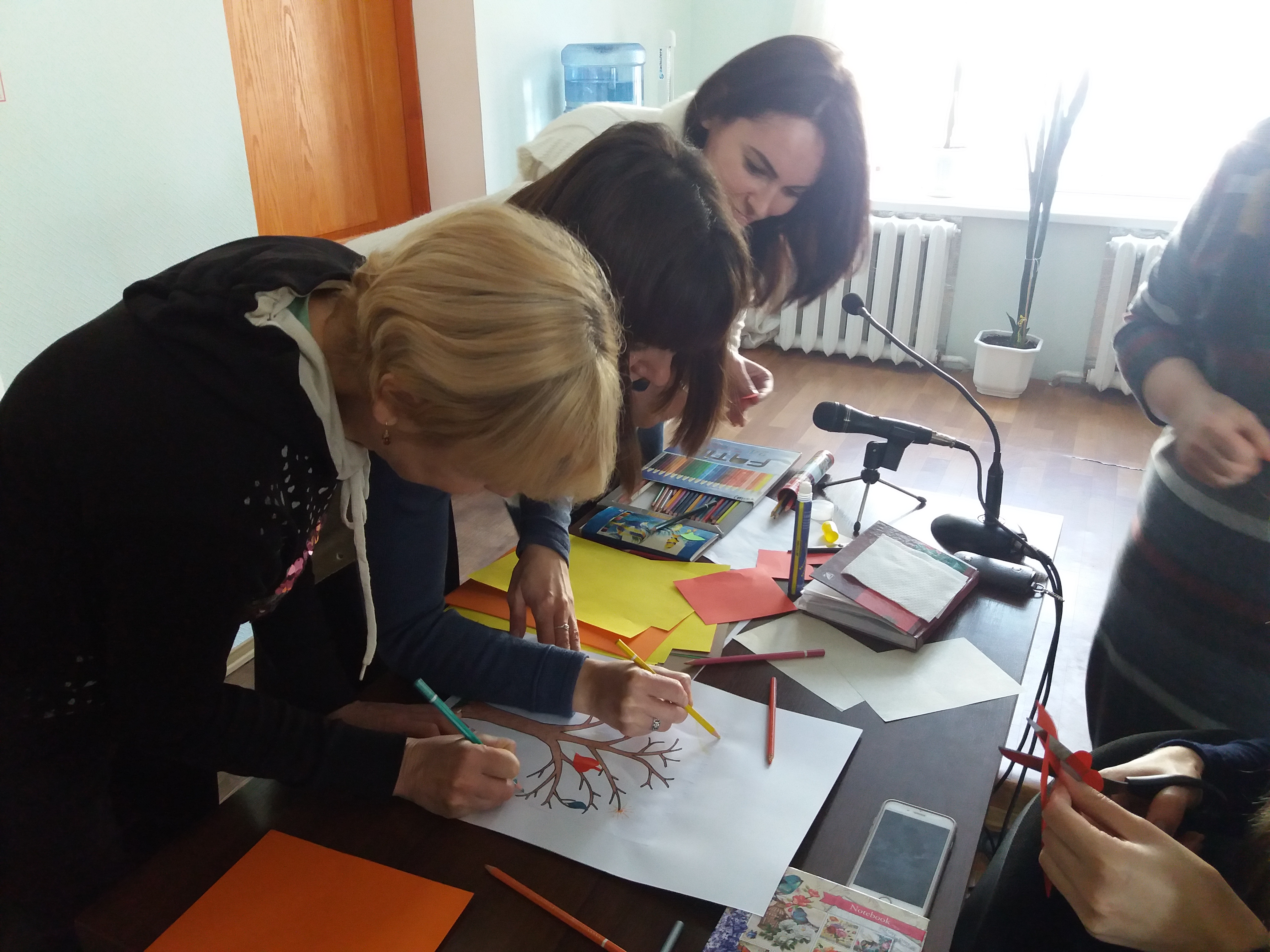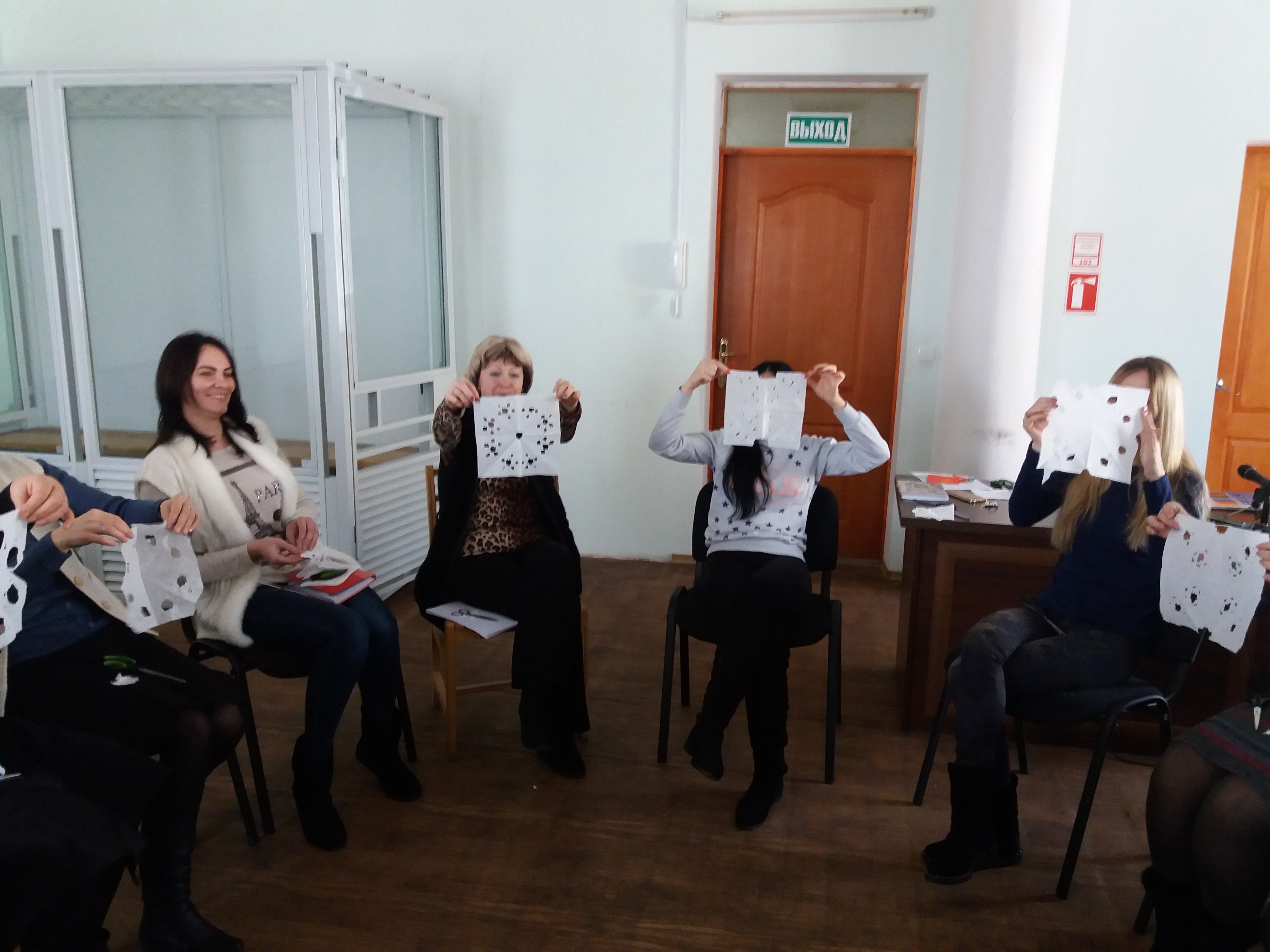 У ході тренінгового заняття виконувалися практичні завдання: вправа-колаж "Дерево", вправа "Квадрат", вправа "Серветка", вправа "Тарілка з водою" та інші завдання.