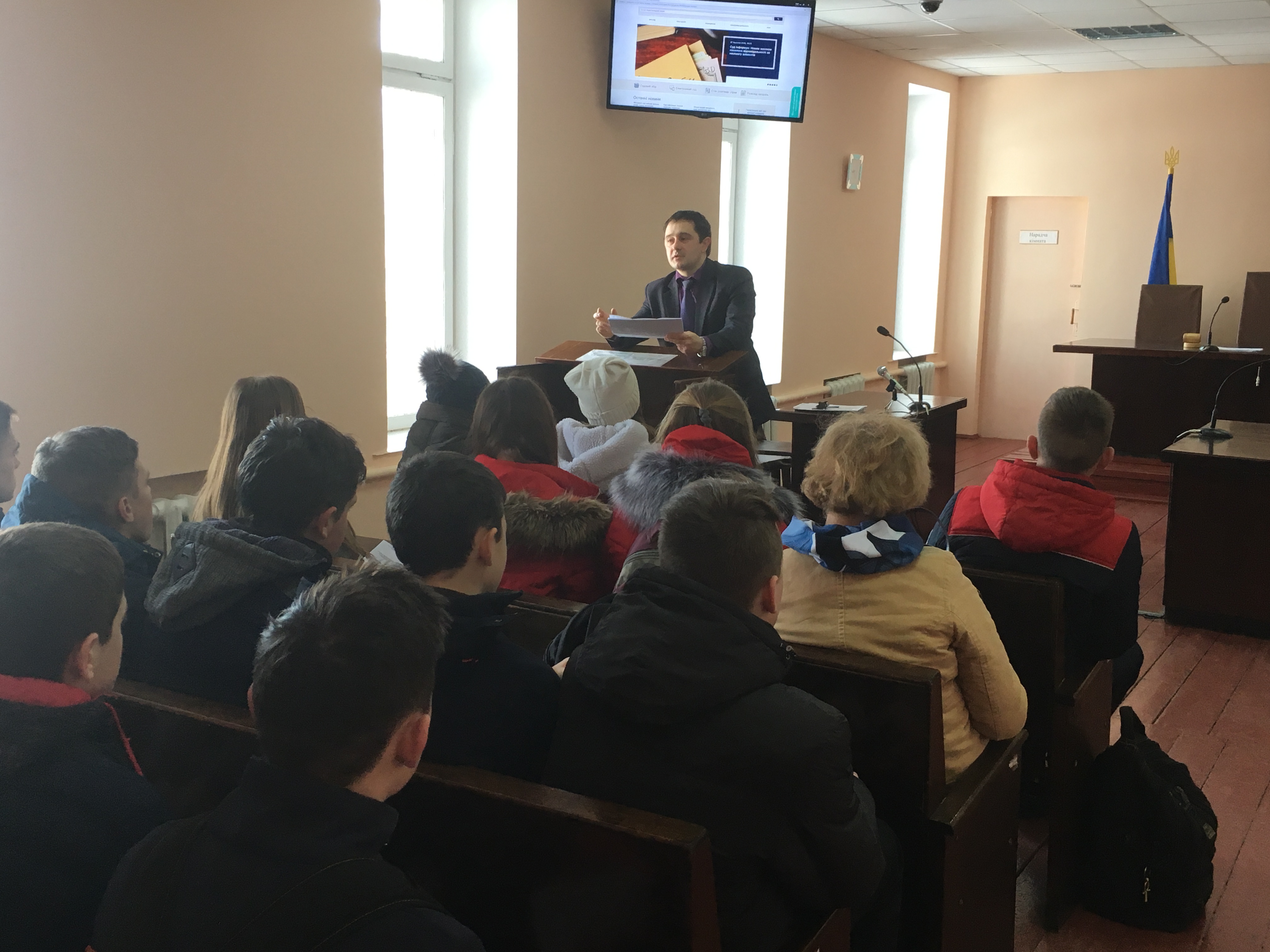 Захід проводився по попередньо розробленому плану, який викликав неабияку цікавість в учнів. Спочатку суддя-спікер Бутенко Д.В. виступив із лекцією щодо умов і порядку судового захисту прав підлітків, останнім доведено до відома загальні правила поведінки в суді, умови та порядок допиту в суді неповнолітніх свідків, роз’яснено як надаються пояснення і показання неповнолітніми особами під час судових засідань, які процесуальні гарантії передбачені у процесуальному законодавстві для забезпечення права на захист у кримінальних провадженнях та у справах про адміністративні правопорушення.